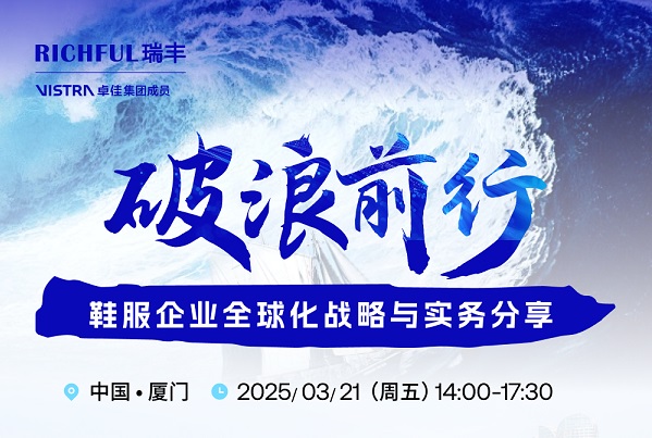 会议时间:2025-03-21 城市:青岛邀请函 | 3月21日 厦门 | 破浪前行——鞋服企业全球化战略与实务分享