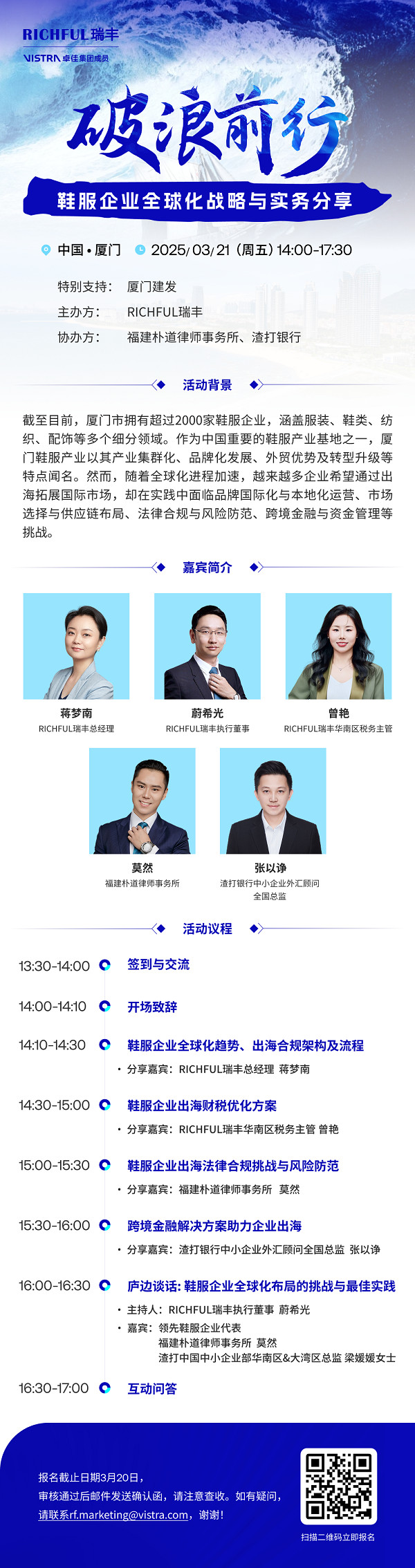 邀请函 | 3月21日 厦门 | 破浪前行——鞋服企业全球化战略与实务分享…